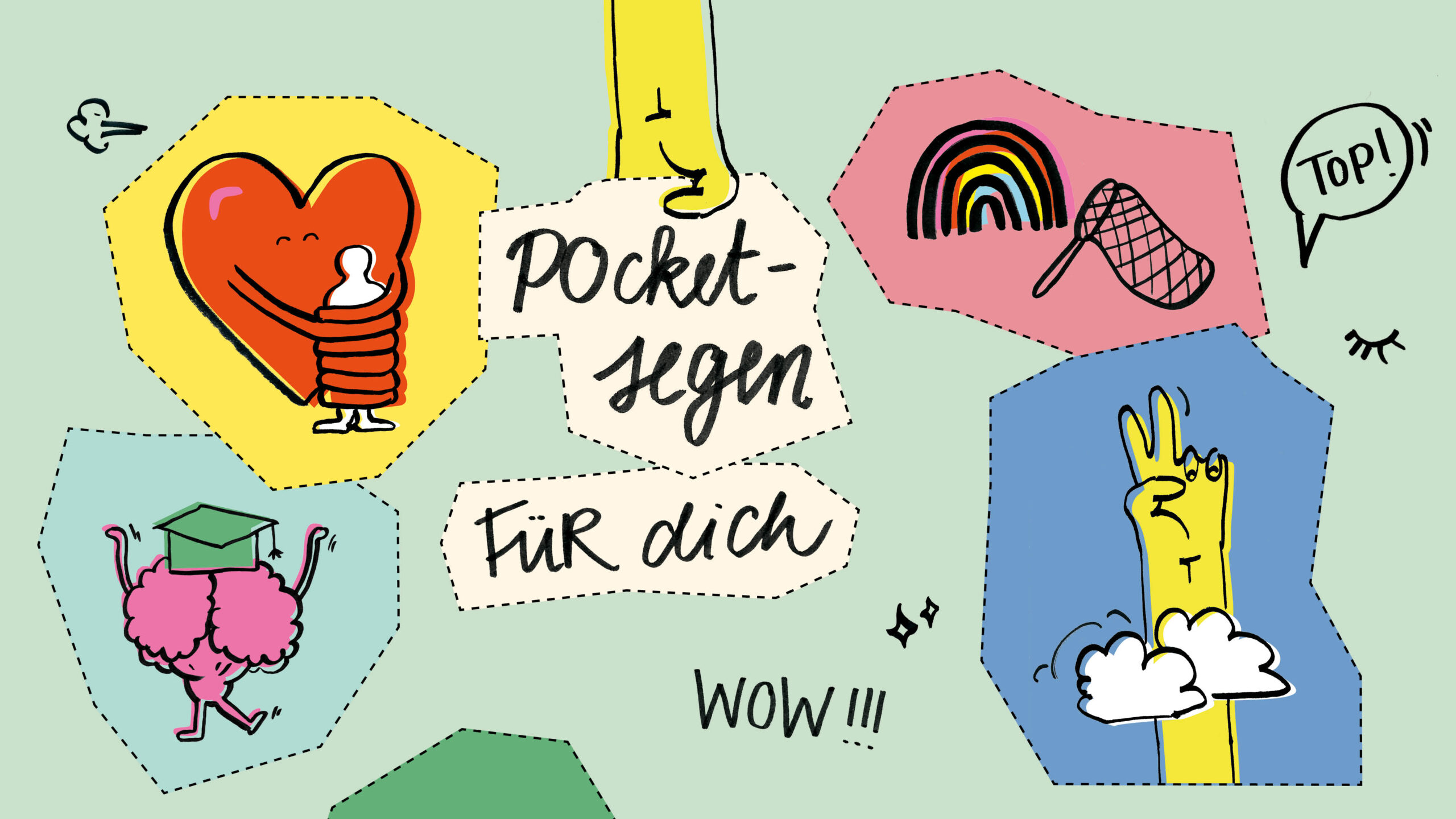 Pocketsegen sind illustrierte Text-Schnipsel zum Einstecken. Und zum Weiterschenken. Sie sollen dich immer daran erinnern, dass Gott in jeder Sekunde bei dir ist.